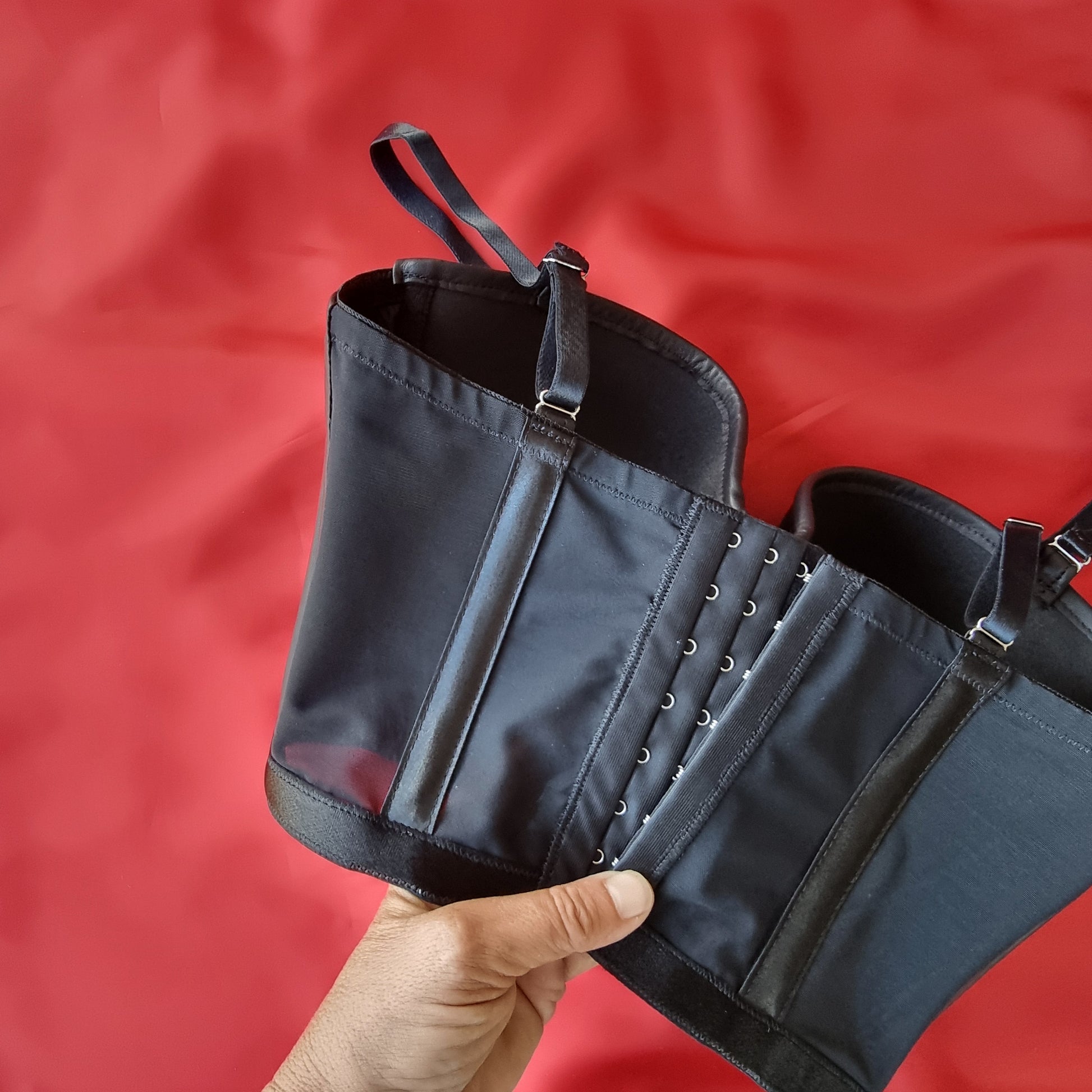 Luxueuse soutien-gorge en cuir de longue ligne, parfaite pour le port sous un corset, légèrement désossée et sous-câblée pour le support.