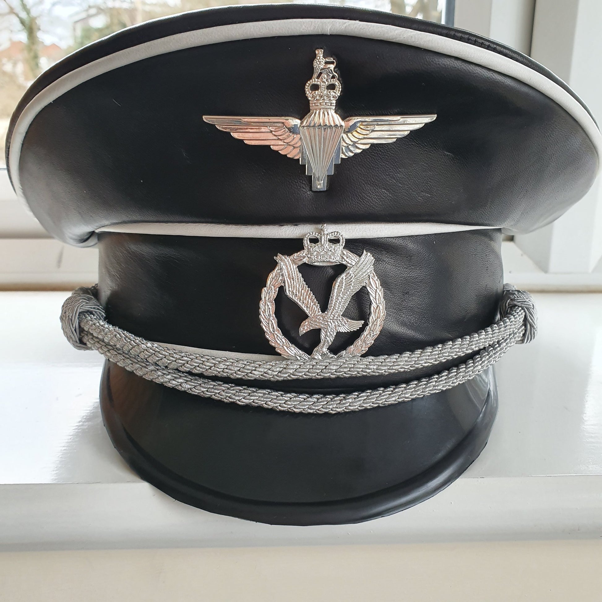 Referencing and inspired directly by our punk past, add some luxury to your dressing up box with this reproduction officer's peaked cap in gorgeous leather with silver or gold cap braid.