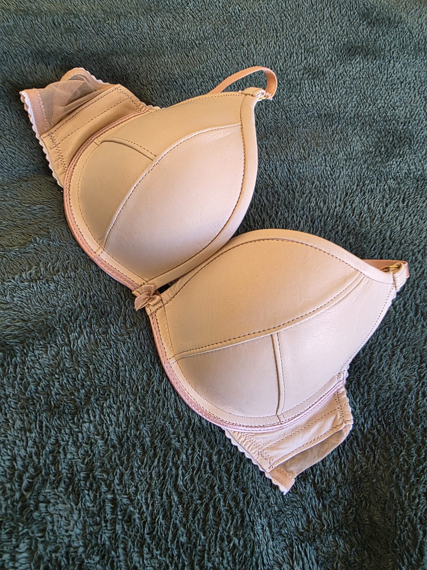 This plunge padded push-up bra is crafted in smoothest leather to give your cleavage a boost.