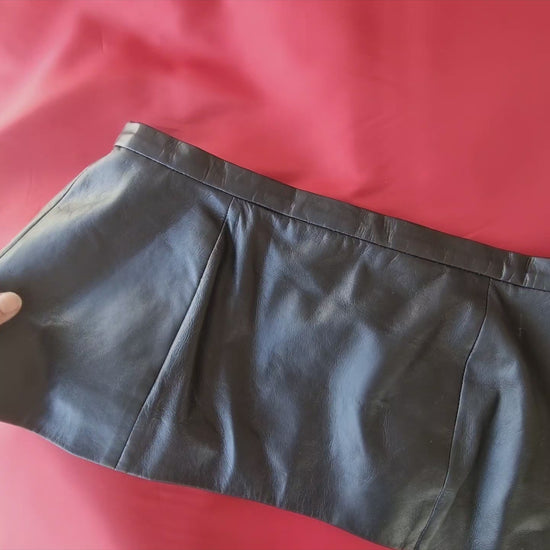 9 Inch micro version of our luxurious glove leather mini skirt. Lightweight and lined.
