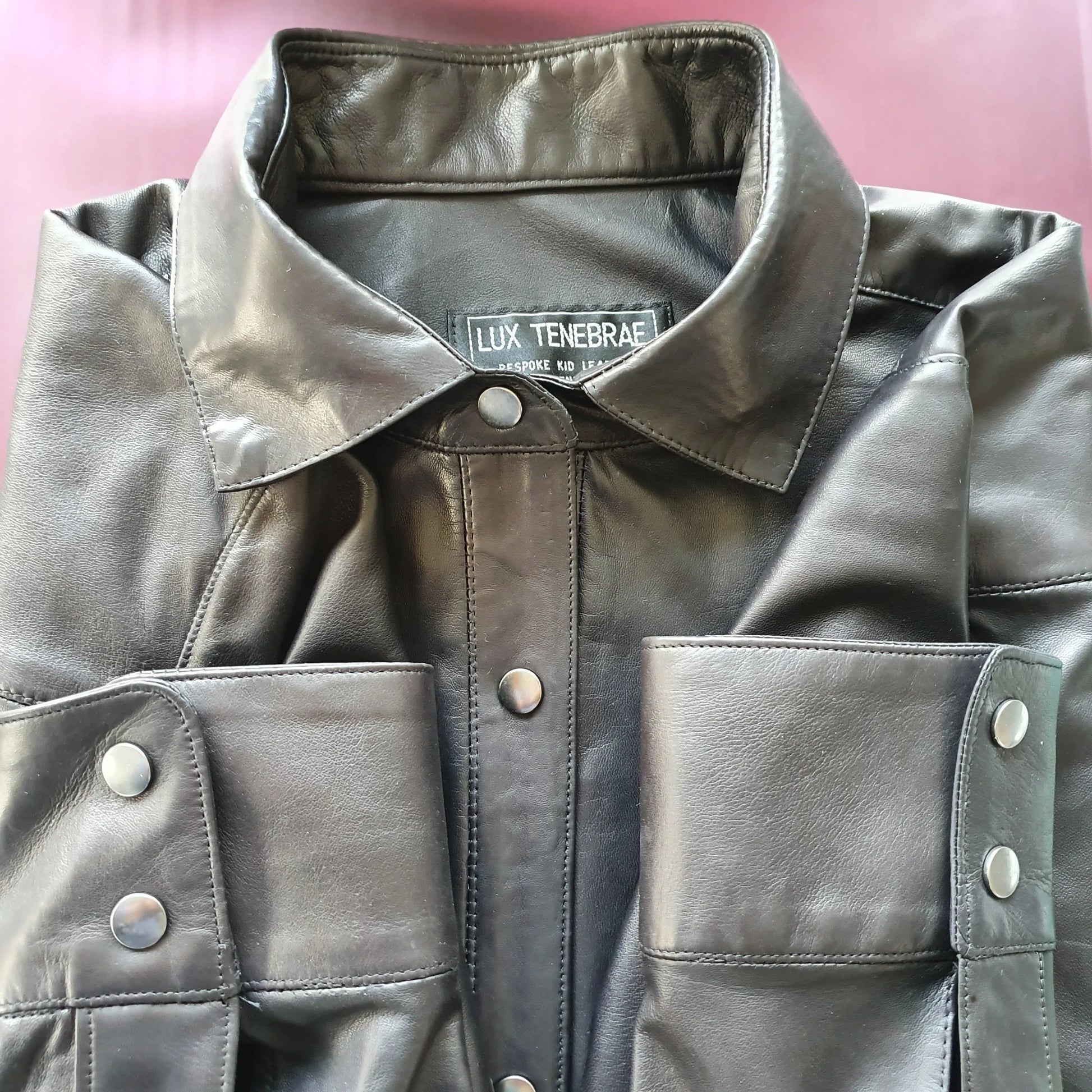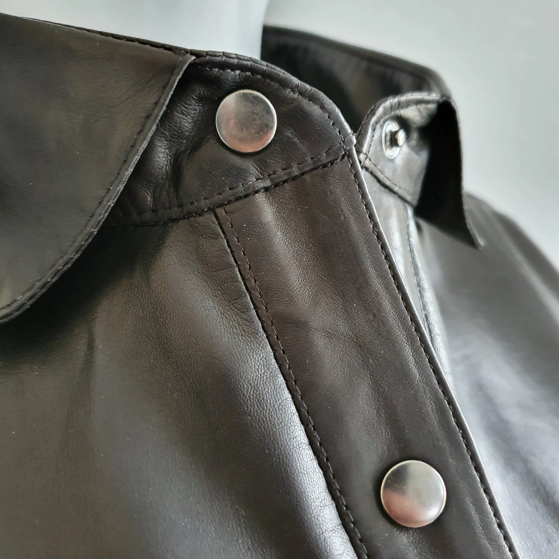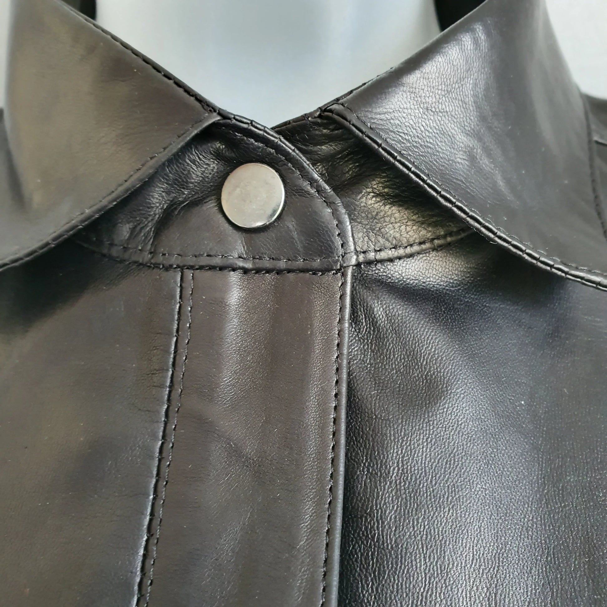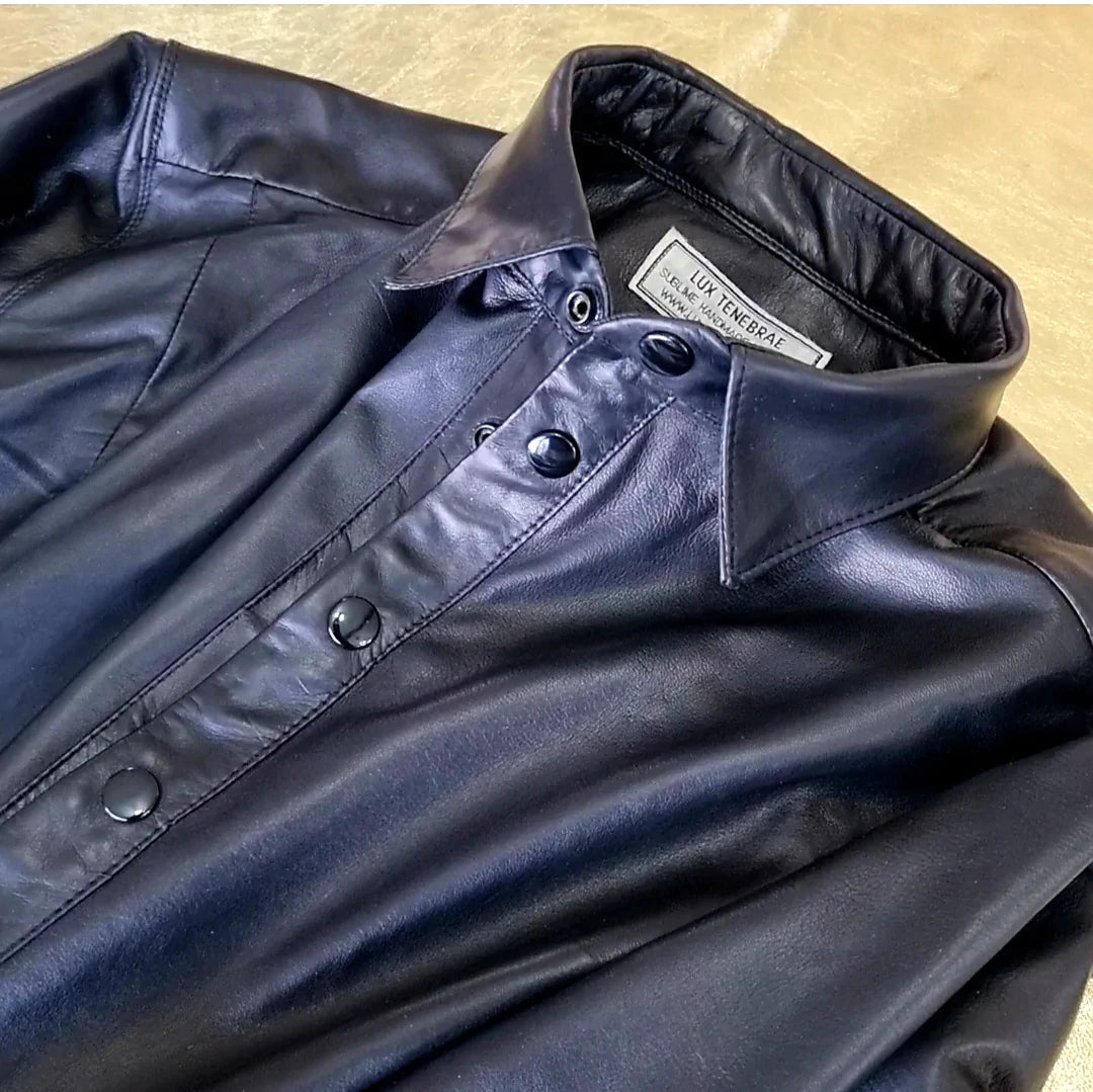 Кожаная рубашка с кожаным перчатником, выполненная с помощью мягкой и мягкой одежды, сделана в мужском или женском обрезанном виде и доступна либо в коротких рукавах, либо в длинных рукавах с наручниками обычной рубашки, которые отменяются.