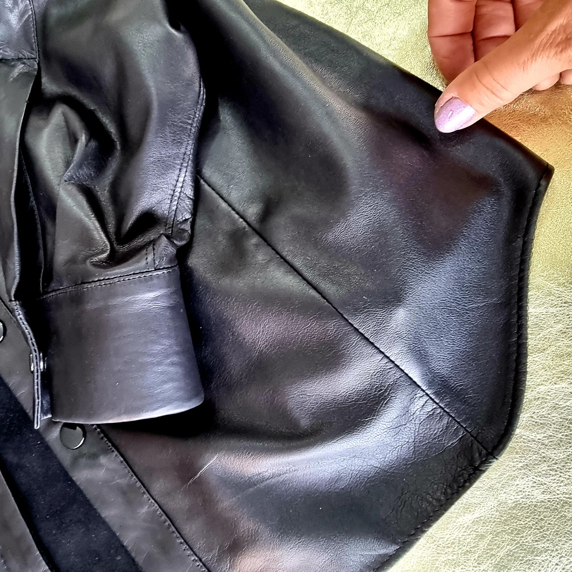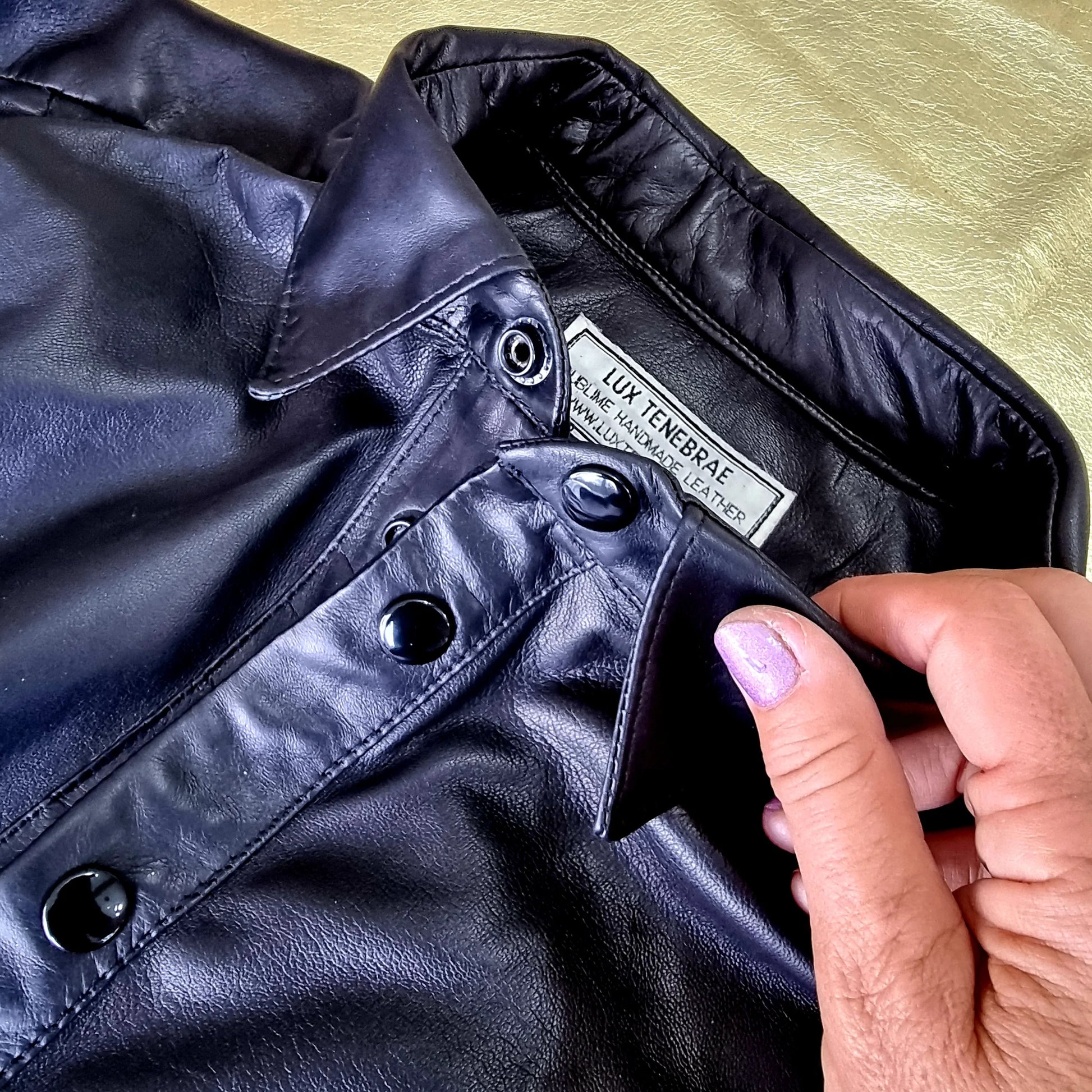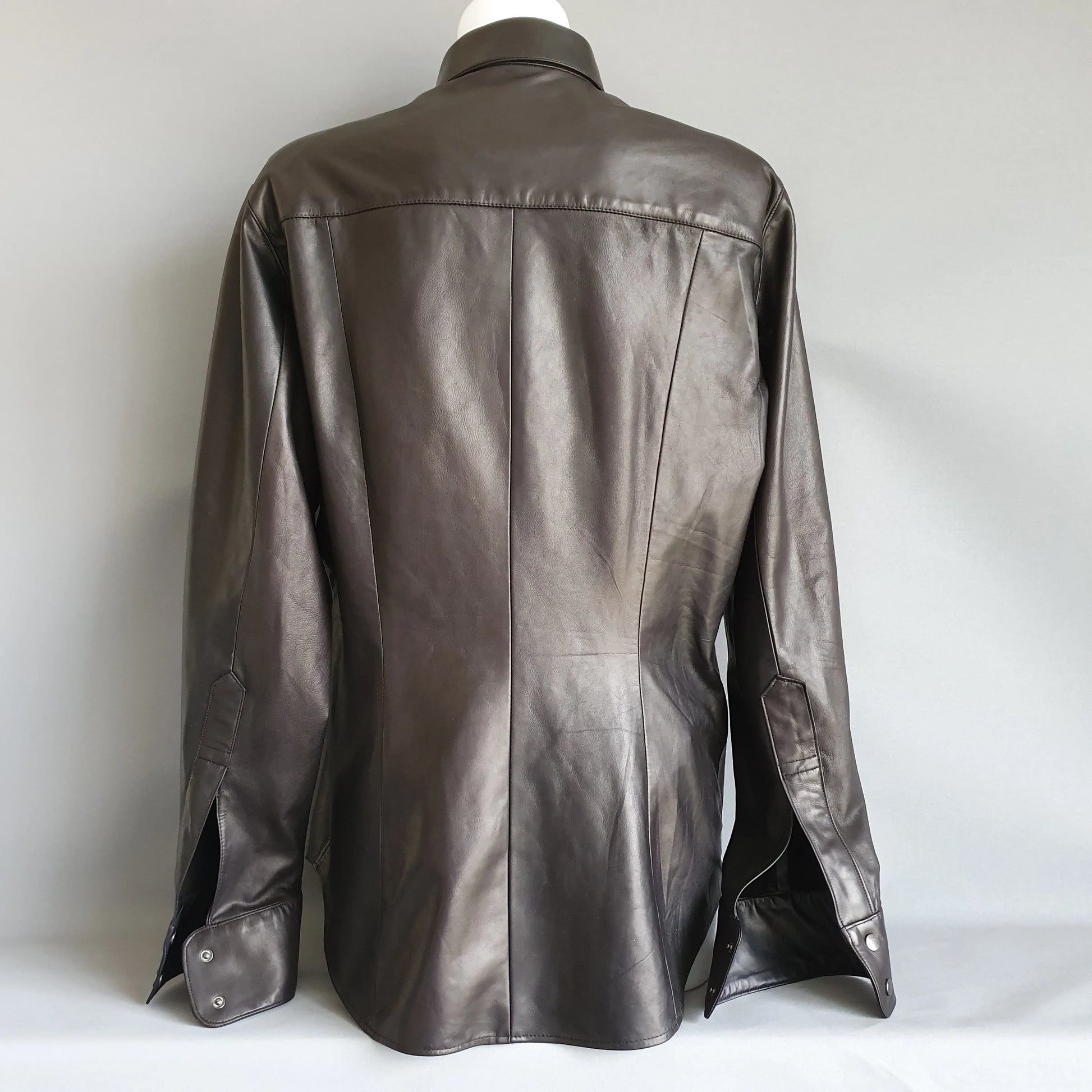 Кожаная рубашка с кожаным перчатником, выполненная с помощью мягкой и мягкой одежды, сделана в мужском или женском обрезанном виде и доступна либо в коротких рукавах, либо в длинных рукавах с наручниками обычной рубашки, которые отменяются.