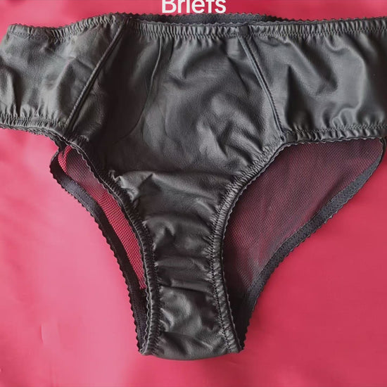 Кожаные женские трусы Beautiful Glove с высокой посадкой и прозрачной сеткой на спине.
